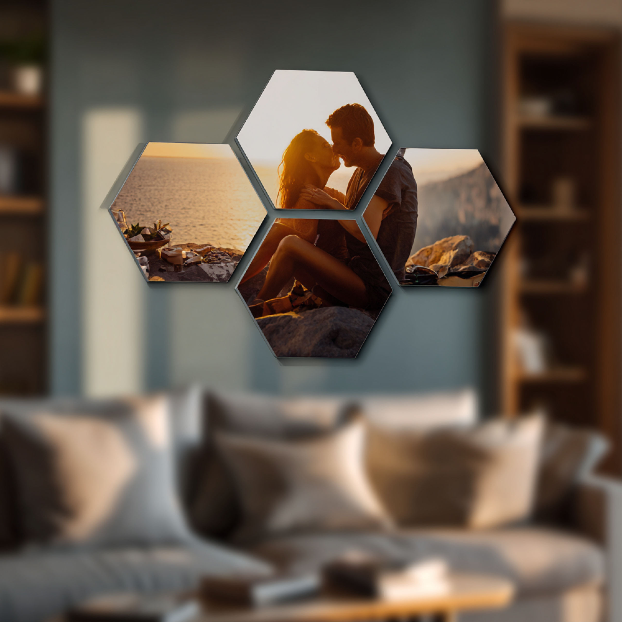 Wil je een originele en speelse manier om je muur te decoreren? Met een foto op hexagon geef je jouw interieur een moderne en creatieve uitstraling. De zeshoekige panelen maken het mogelijk om één foto groot weer te geven of meerdere hexagons te combineren tot een unieke fotowand. Perfect voor thuis, op kantoor of in een winkelruimte.